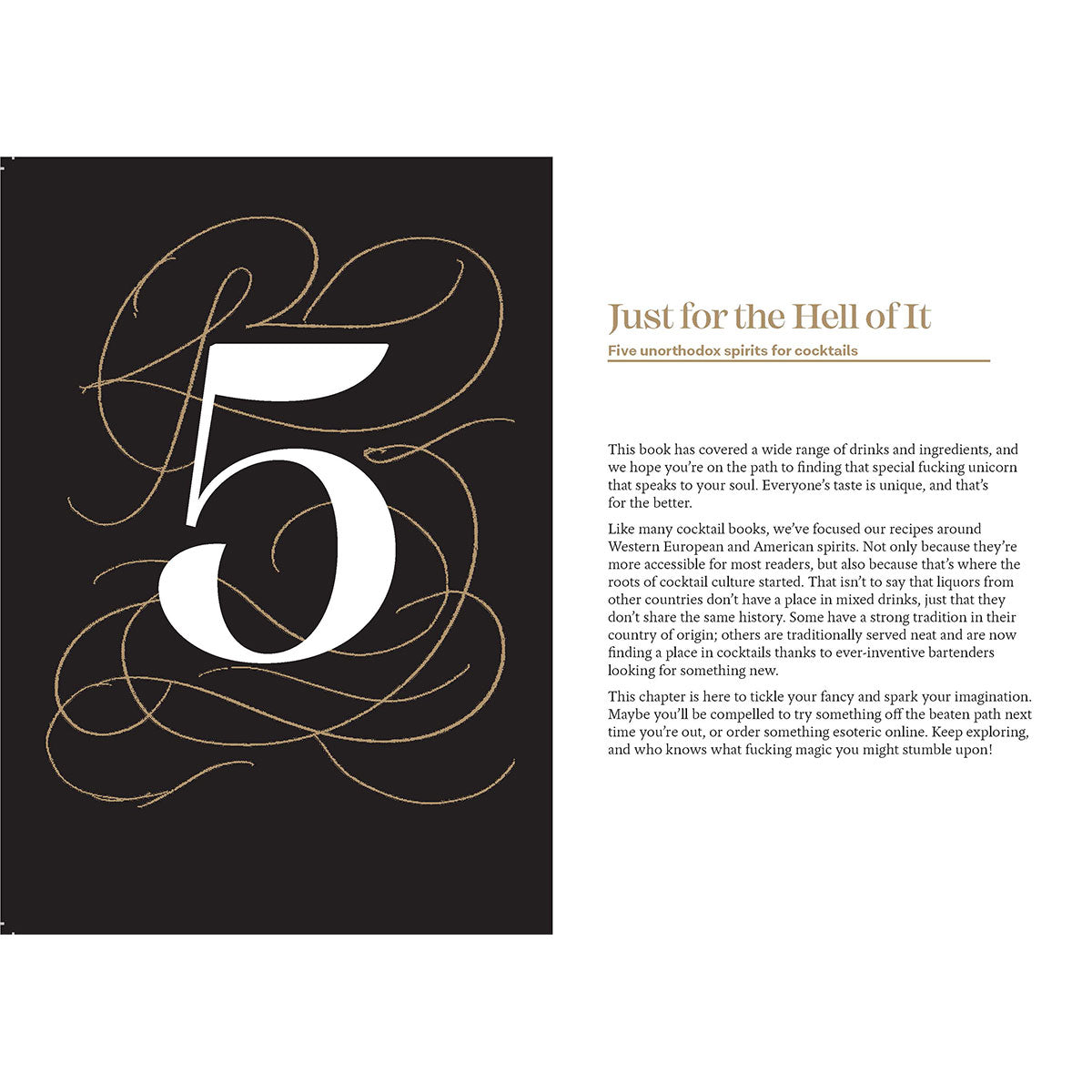 Complete with a gold foil-stamped cover, gilded page edges, metallic ink, and sassy calligraphy throughout, Classy as Fuck Cocktails is a stylish addition to any home bar.